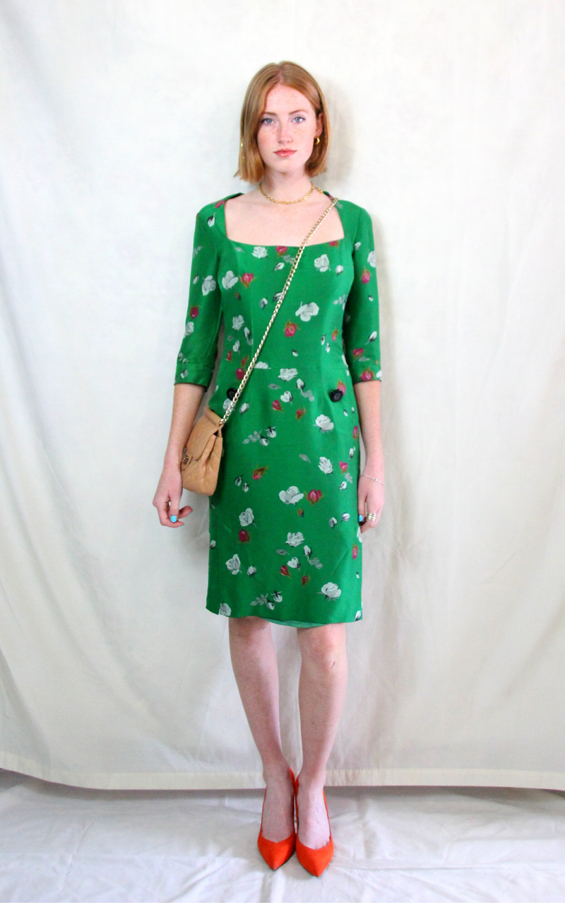 Green Floral Pencil Dress