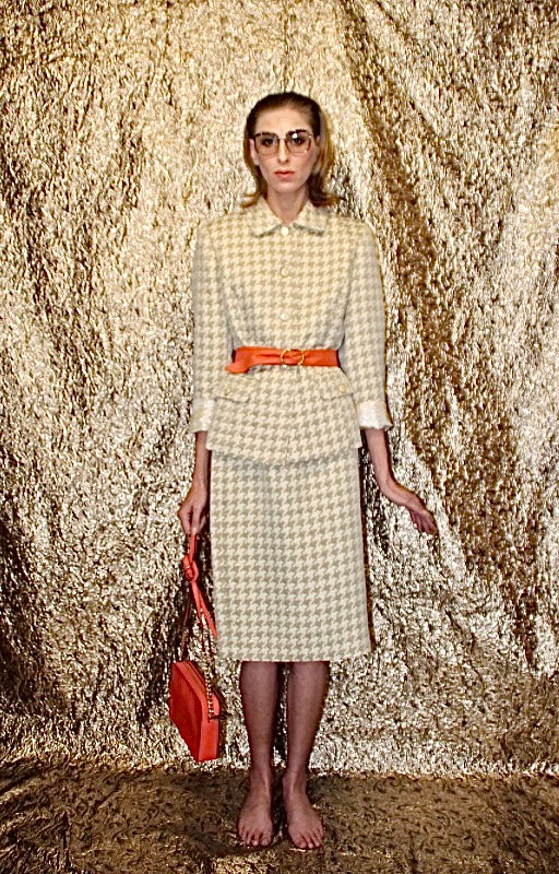 Vintage Cream Houndstooth Skirt Set