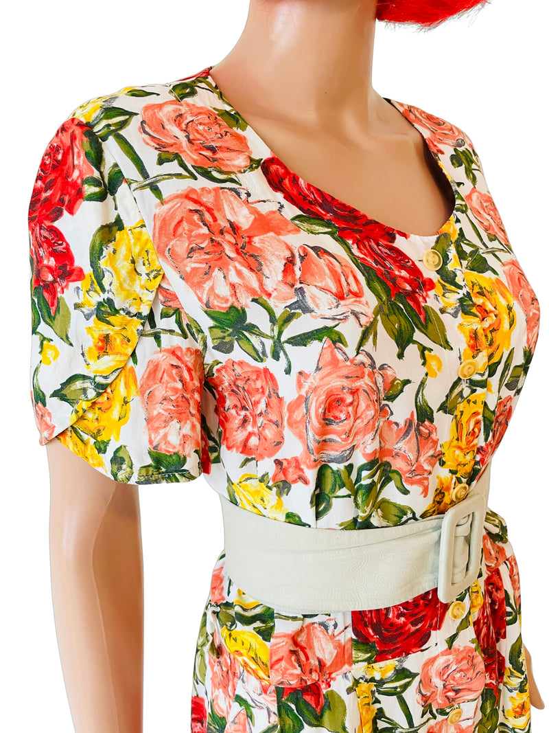Vintage 1980's Rose Floral Tea Dress